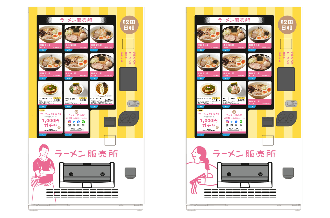 この冷凍自動販売機(ど冷えもん)では、吹田市内の人気ラーメン店の味を冷凍ラーメンとして提供し、地元飲食店の販路開拓と地域活性化に貢献することを目的に設置されました。