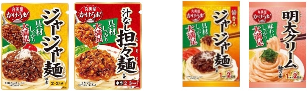 お好みの麺にかけるだけで、自分で作るには手間がかかるメニューやいつもの麺料理とは違う味わいのメニューが、ご家庭で簡単に楽しめる麺用のソースです。具材がしっかり入っていてソースも濃厚なので食べ応えがあります。温めいらずで、そのまま麺にかけて食べられ、うどん・中華麺・そうめんなどお好みの麺で楽しめます。家族で食べやすい2~3人前と、人数に合わせて使いやすい1人前×2回分の2形態、あわせて10種類のラインアップで発売中です。