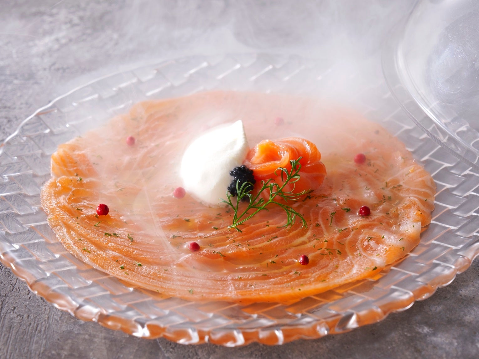 サーモン料理の定番。自家製スモークサーモンを提供前に追い燻製した、スモーク好きにはたまらない一品。