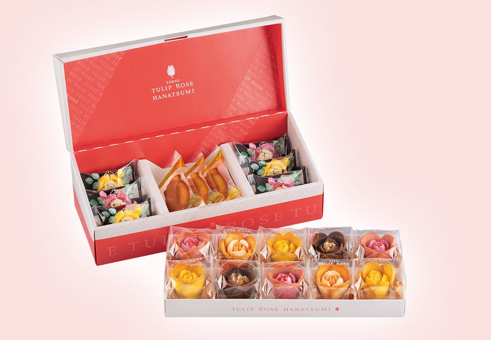 【内容量】チューリップローズ(ベリー・パッションマンゴー 各3個、キャラメルナッツ・チーズ 各2個)、ローズガーデン(カシスバニラ・カルダモンシトロン 各3個)、チューリップローズ フィナンシェ 3個