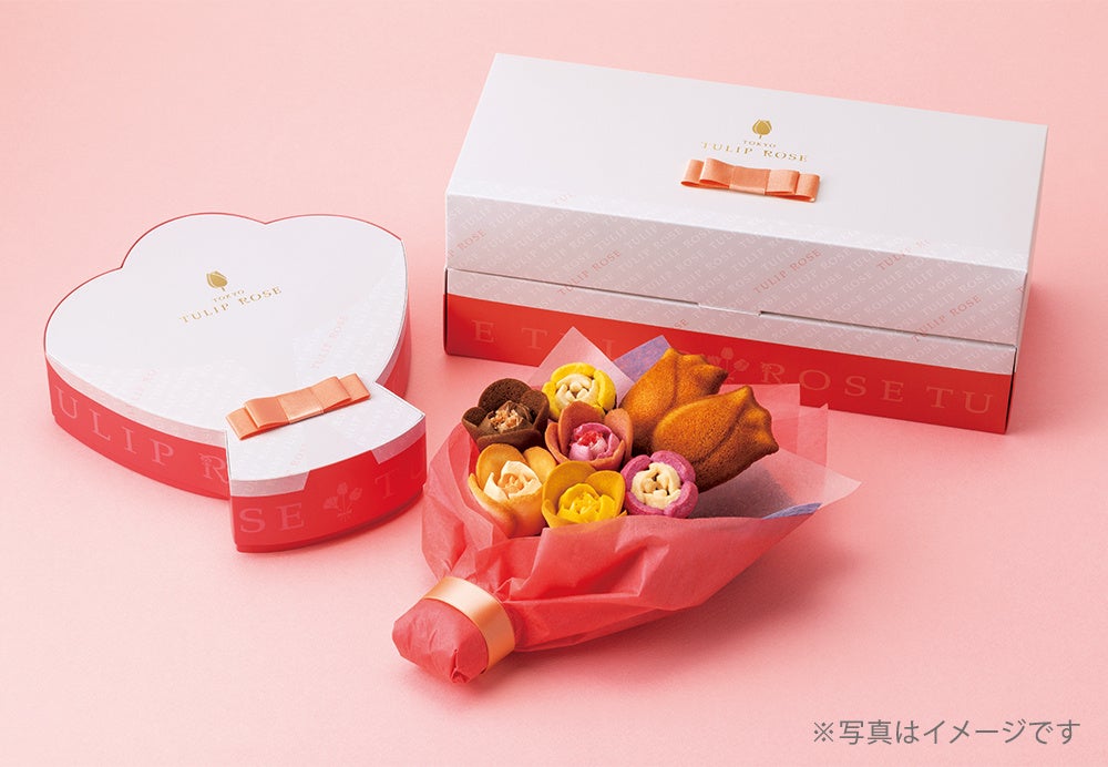 そんな「TOKYOチューリップローズ」から この春、お花のスイーツたちをつめ込んだ、春のスペシャルボックスが新登場いたします。そのまま花束として贈れる可憐なボックスと、2段重ねの豪華なボックスの2種類。感謝の気持ちを伝える母の日の贈り物としてもぴったりな詰合せです。