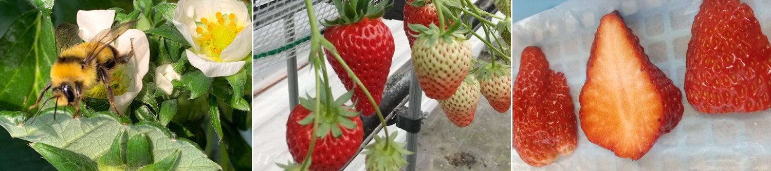 イチゴの着果期間中は農薬を使用せず、安心安全なイチゴを育てています。