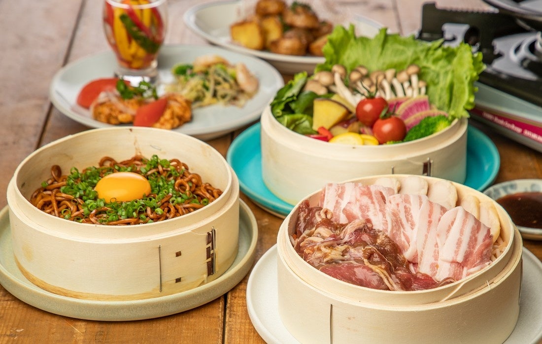 お席にて卓上コンロで蒸すので、蒸したてが食べられます。 その他メニューもリニューアルし、定食などのお食事メニューや各種タパスメニューもご用意。お食事やご宴会など、幅広いシーンにお使いいただける内容に変更いたしました。