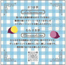 ”お芋がパリに恋をした”をコンセプトに、さつま芋、むらさき芋、安納芋などそれぞれのスイーツに最適な糖度・食感・風味の芋をチョイスし、芋の甘みを活かした味わい深い洋菓子を製造しています。