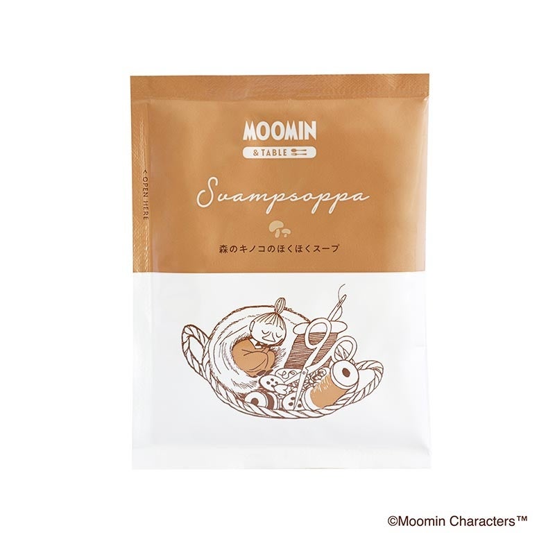 森のきのこを味わうリトルミイのリラックススープ。スウェーデンでは古くからキノコ狩りが親しまれています。このスープでは香りの良いシイタケ、マイタケ、マッシュルームを選び、ミルクでコトコト煮込みました。