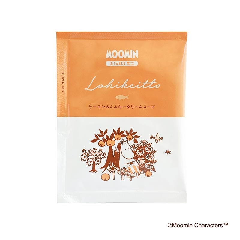 あったかくてミルキーなムーミンママのサーモンクリームスープ。分厚いサーモンとたっぷり野菜をミルクで煮込みました。ほくほくジャガイモの食感も楽しめます。