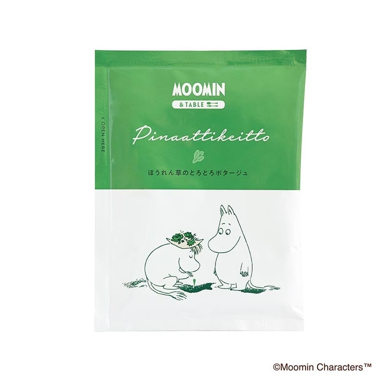 ムーミン&スノークのおじょうさんのとろーりグリーンポタージュ。青々と新鮮なほうれん草の爽やかな苦みと甘味がたっぷり溶けだしたグリーンポタージュです。