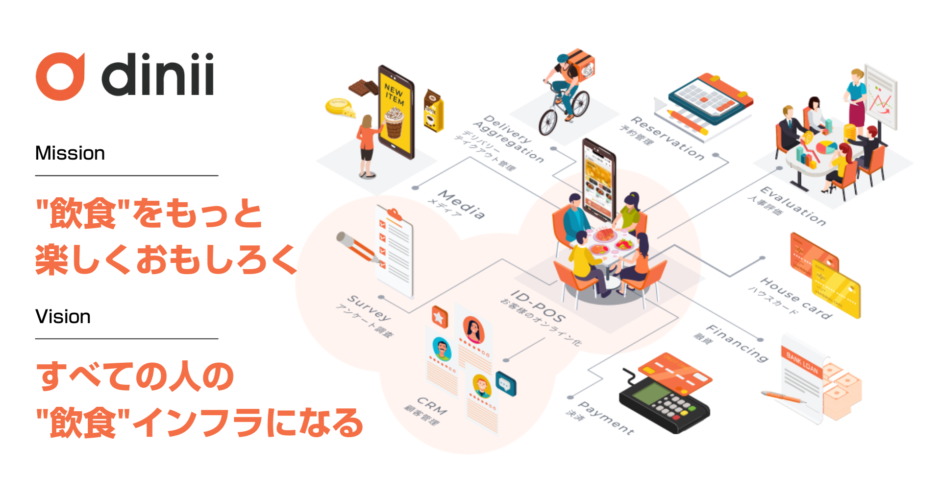 ダイニーでは、「”飲食”をもっと楽しくおもしろく」というミッションのもと、すべての人の飲食のインフラになるために、飲食店向けのモバイルオーダーやID-POSを開発・提供しています。