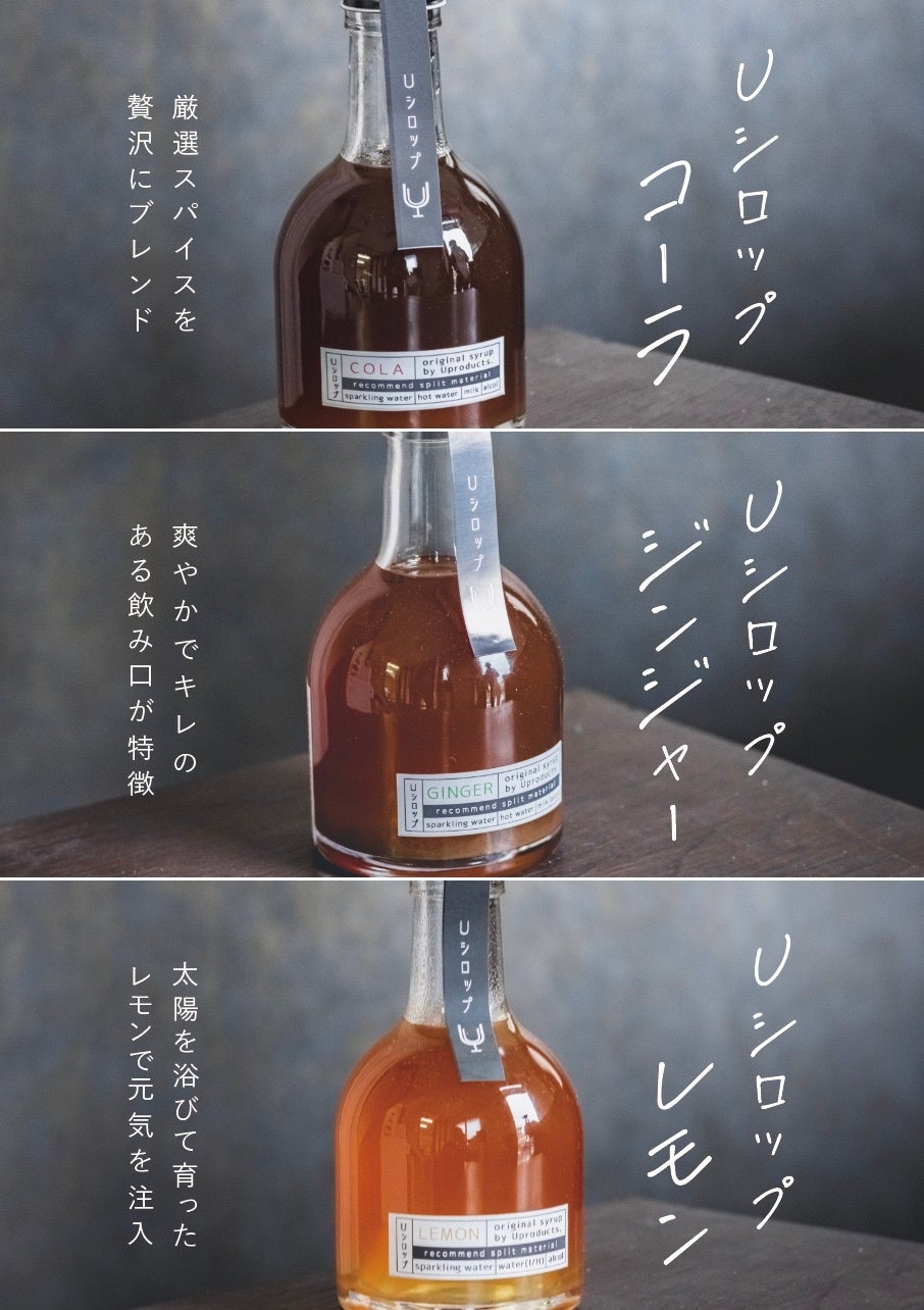 その後、2023年1月にデザイナーと共にシロップをデザインする会社「合同会社Uプロダクツ」を設立いたしました。代表商品の「Uシロップ」シリーズをはじめ、おとぎ話をモチーフにした「otogi」シリーズを展開しています。