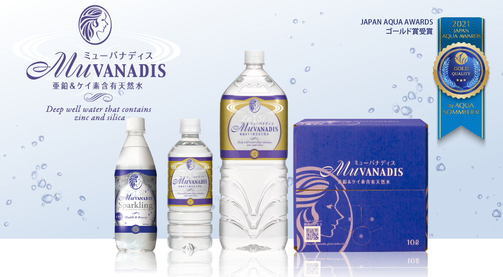 創業当初より人気高く、過去にはジャパンアクアアワードゴールド賞の受賞歴もある、亜鉛とケイ素含有のミネラルウォーター『ミューバナディス』。
