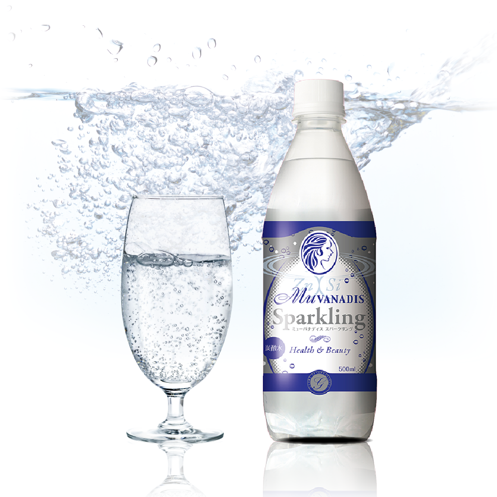 ミネラル分が多いと充填時に炭酸がうまく溶け切らないため、一般的に市販されている炭酸水は純水(ミネラル分を除去しているもの)に炭酸を溶かしているものが多いですが、ミューバナディススパークリングは協力工場の努力の元、亜鉛やケイ素などミネラル分そのままで最大限の炭酸をプラスすることを実現しました。