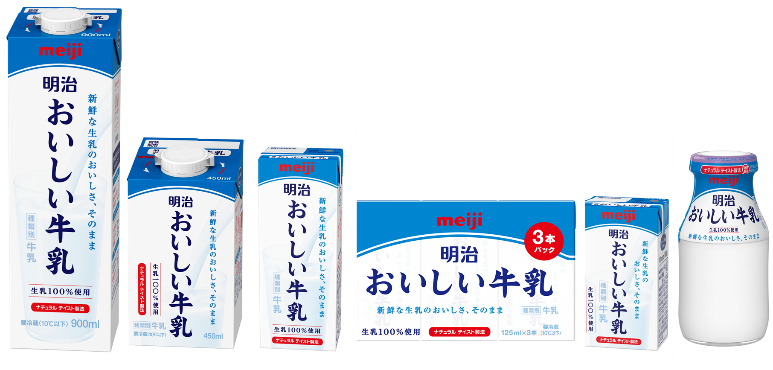 ・「明治おいしい牛乳」(900ml・450ml・200ml・125ml×3・125ml・宅配専用 180ml ビン)