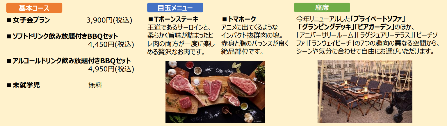 ▶今年からお子様メニューが新登場のほか、ソファー席でもゆったりBBQが楽しめるように