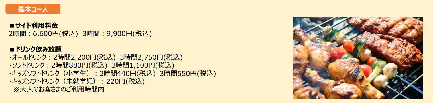 ※強雨中止 ※荒天中止 ※小雨の場合はお客さま判断で実施可 ※全席禁煙