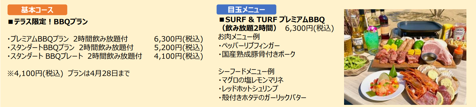 ※雨天中止 ※荒天中止(お客さまのご希望次第で店内開催)※全席禁煙