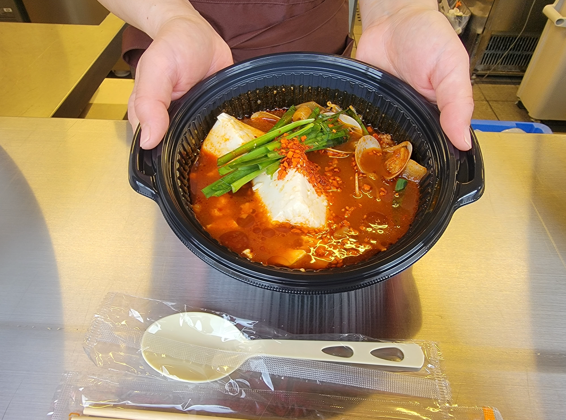 なお、店内飲食の際は、券売機で希望する商品を購入し、セルフサービスで食事を受け取る流れとなります。テイクアウトやドライブスルーの利用も可能です。特に「スンドゥブ」はテイクアウトやドライブスルーでの提供時間を短縮するために、試行錯誤を重ねて調理時間を短縮し、少しでも早くご提供出来るように工夫をしました。