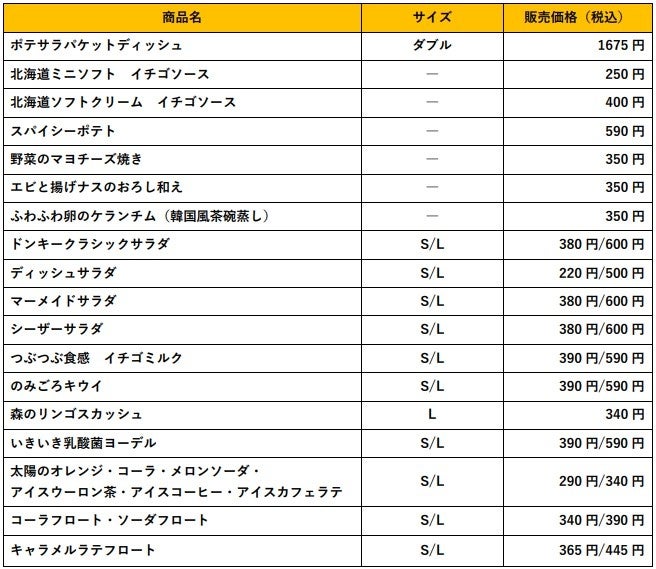 新年度が始まるこの季節に様々な場面でびっくりドンキーを楽しんでほしいという想いを込めて、サラダ、ドリンクの2サイズ化やポテサラパケットディッシュのダブルサイズの登場に加え、デザートやアラカルトメニューにおいても新たな商品が登場します。