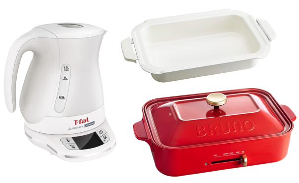 ・新生活応援家電(「T-fal ジャスティン プラス コントロール ホワイト 1.2L」 or「BRUNO コンパクトホットプレート BOE021-RD+セラミックコート鍋」いずれか1点)