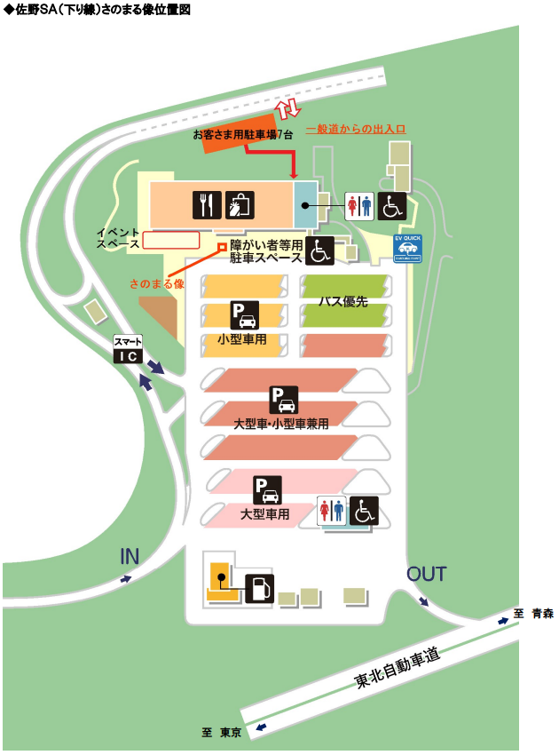 栃木県佐野市、NEXCO東日本関東支社(埼玉県さいたま市)及びネクセリア東日本株式会社関東西支店(埼玉県さいたま市)は、この度、地域連携の一環として、 E4東北自動車道(以下、「東北道」)佐野サービスエリア(以下、「SA」)(下り線)に佐野ブランドキャラクターさのまる©佐野市の像を設置しました。