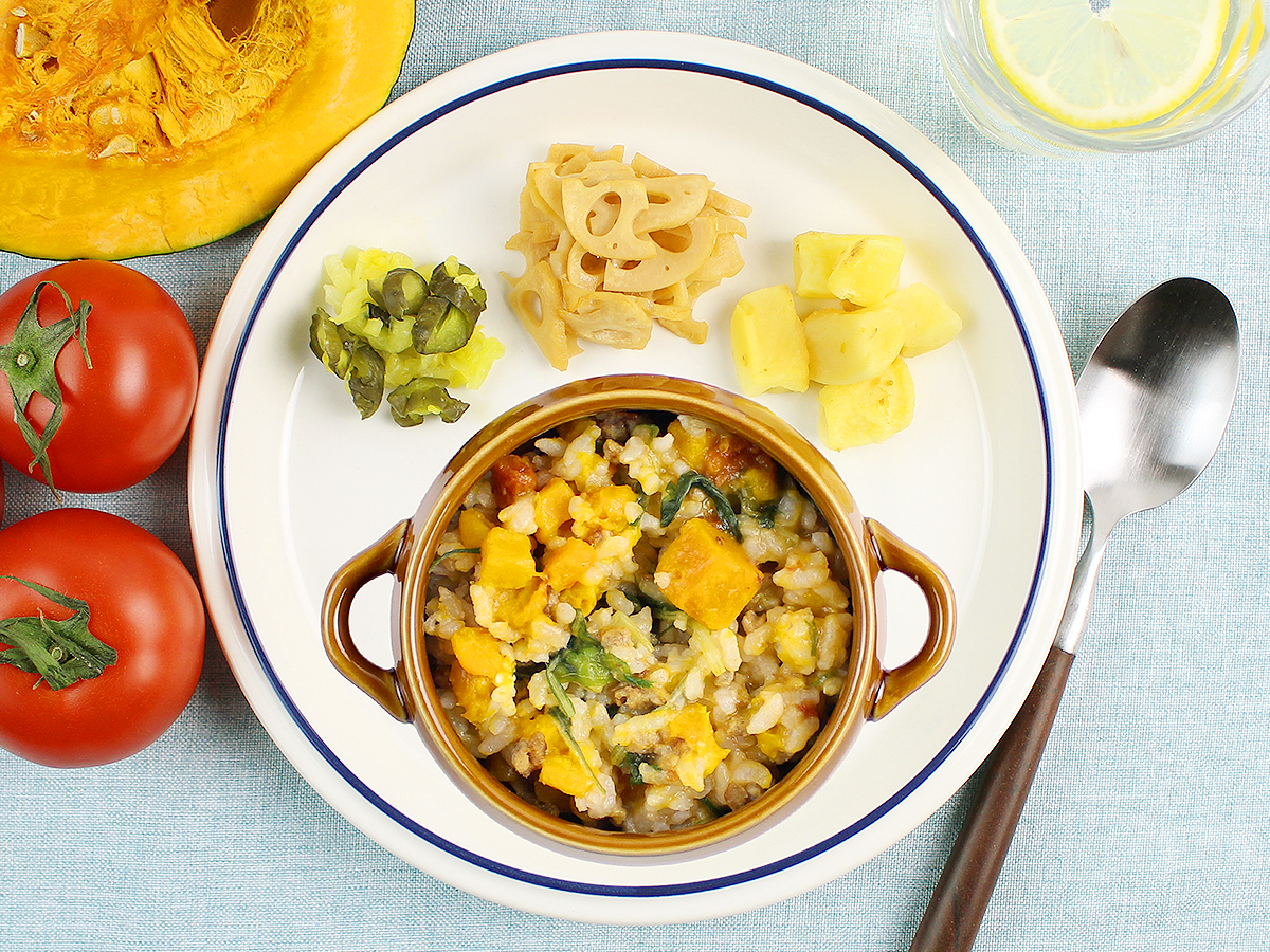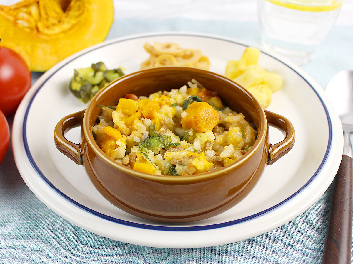 - 【食数限定メニュー】牛肉とかぼちゃの玄米リゾット