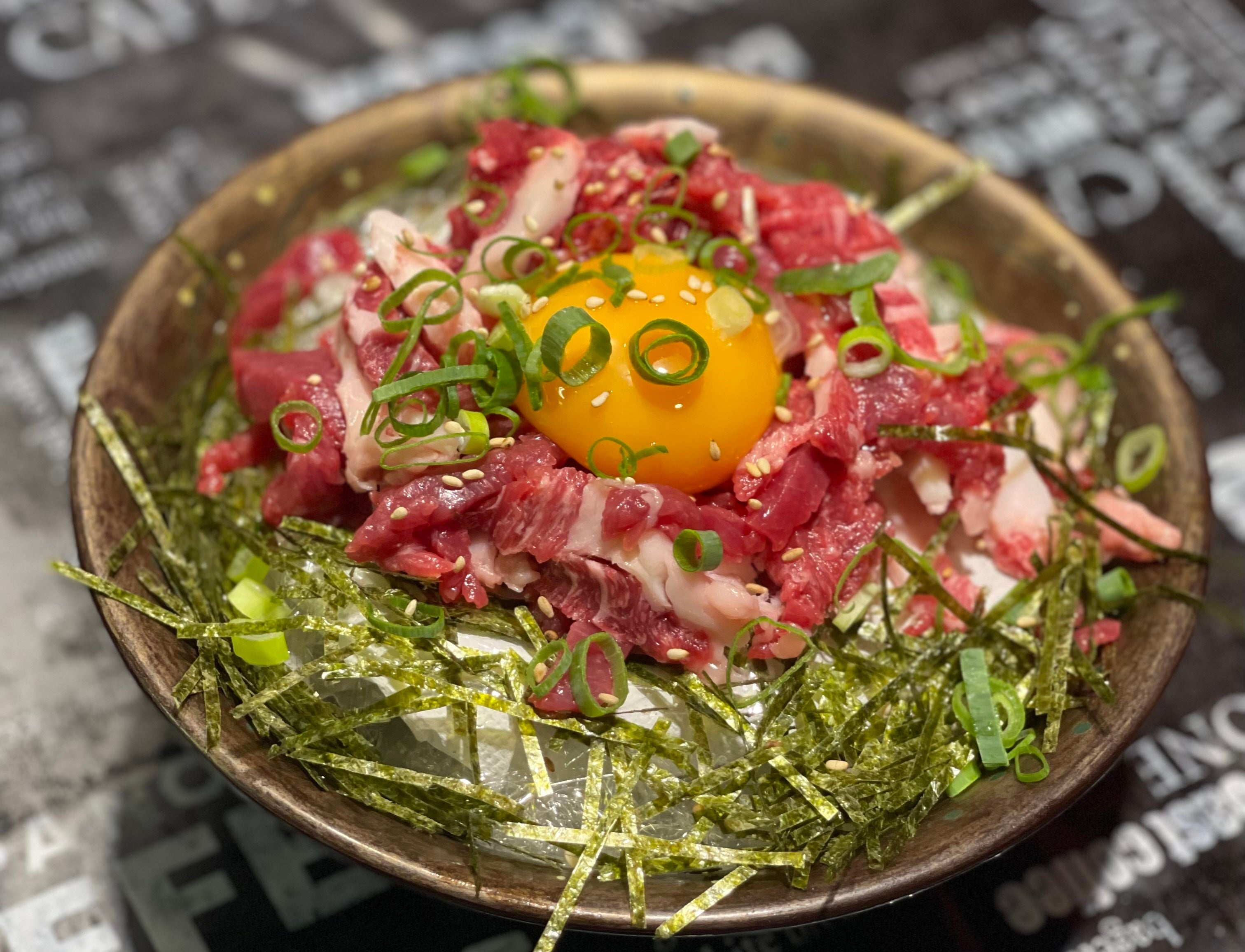 上質な馬肉を炙り風味豊かな桜ユッケにいたしました。馬肉のうまみを感じながら、当店自慢の特性たれでごはんと一緒にかきこんでお召し上がりください。