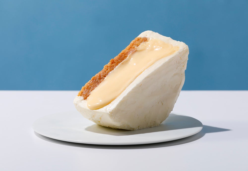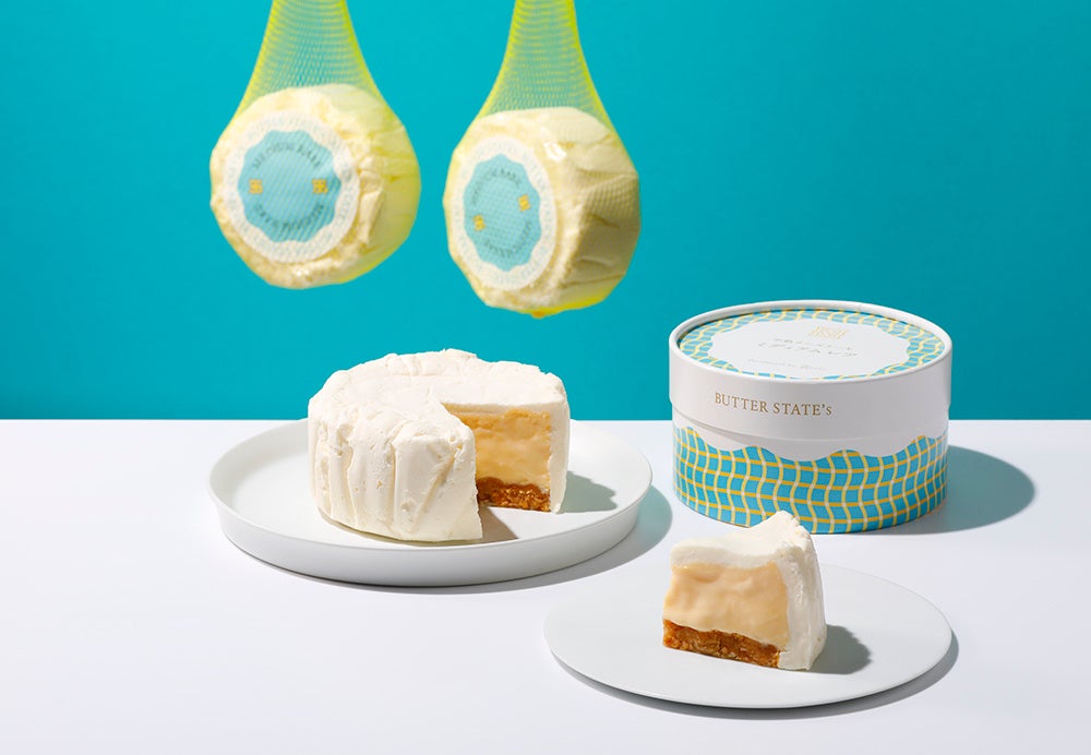 この春、ブランドの新たな定番として『半熟チーズケーキ ミディアムレア』が誕生いたします。その名の通り“半熟とろとろ”食感でお作りした、こだわり満載のチーズケーキ。箱の中で“黄色いネット”に包まれている珍しい見た目は、紐で縛ってぶら下げるイタリアチーズの熟成方法から着想を得ています。パティシエ仕込みの本格的な味を、ユニークなエスプリで落とし込んだ『バターステイツ by銀のぶどう』を象徴する一品です。