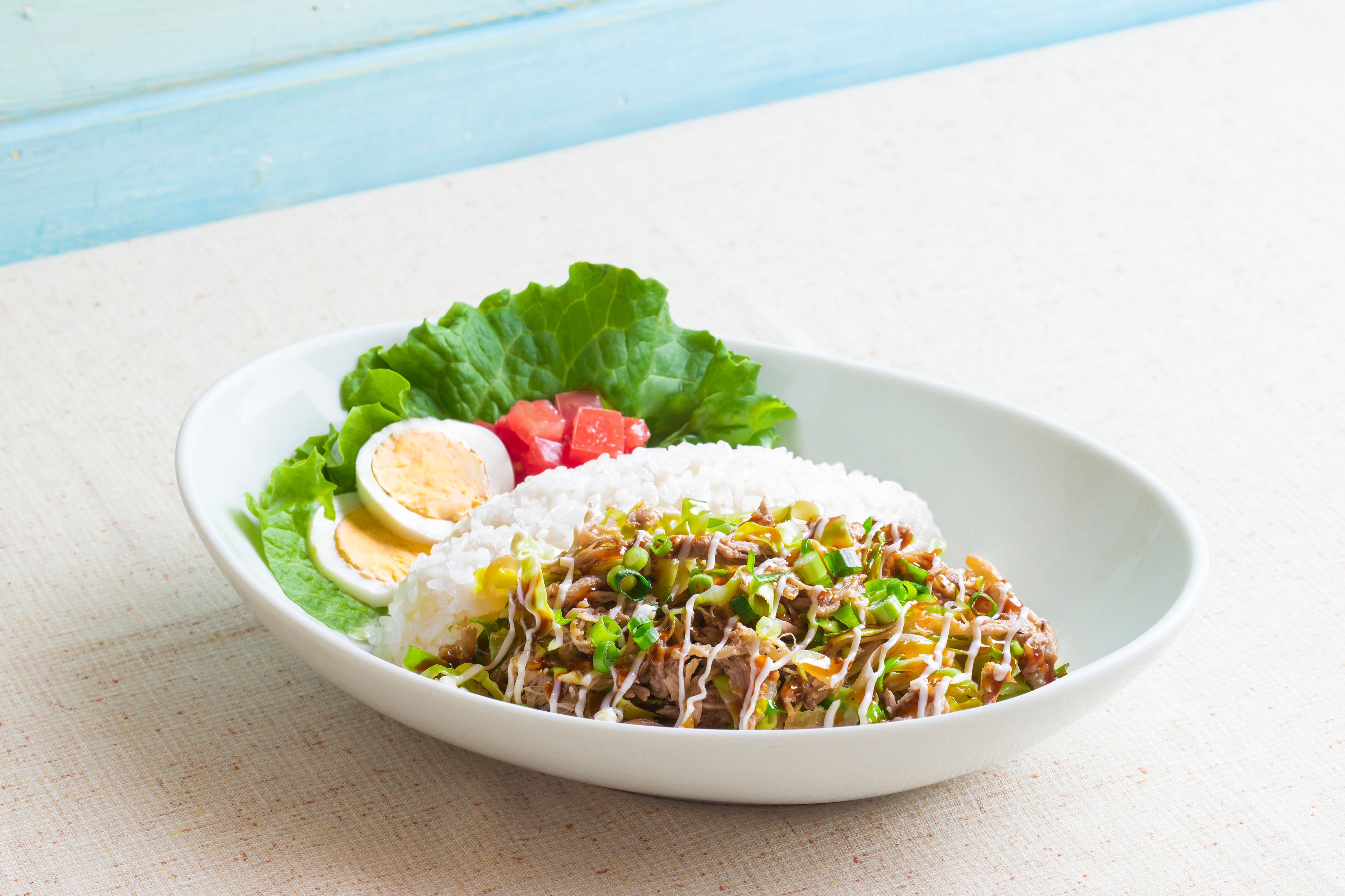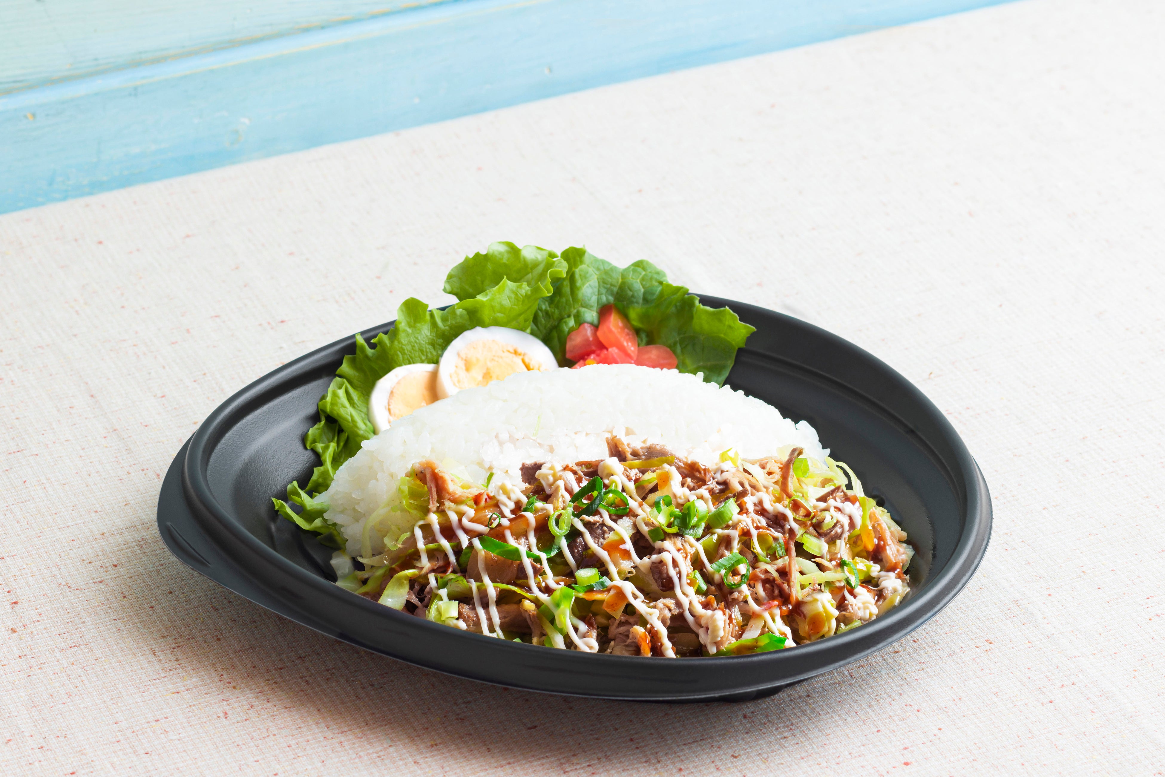 ハワイの定番メニュー「カルアポーク(豚肉の蒸し焼き)」をキャベツと炒めてBBQソースで仕上げたライスボウル。