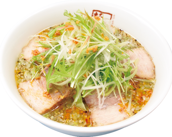 さらに、細かく刻んだねぎを、チャーシューの風味をたっぷり含んだラードと一緒にオーダー毎に香りが出るまでじっくりと炙り上げた「焦がしネギ」をトッピングしました。その上に、ごまを加えて、食欲をそそる香ばしい香りをスープに加えました。