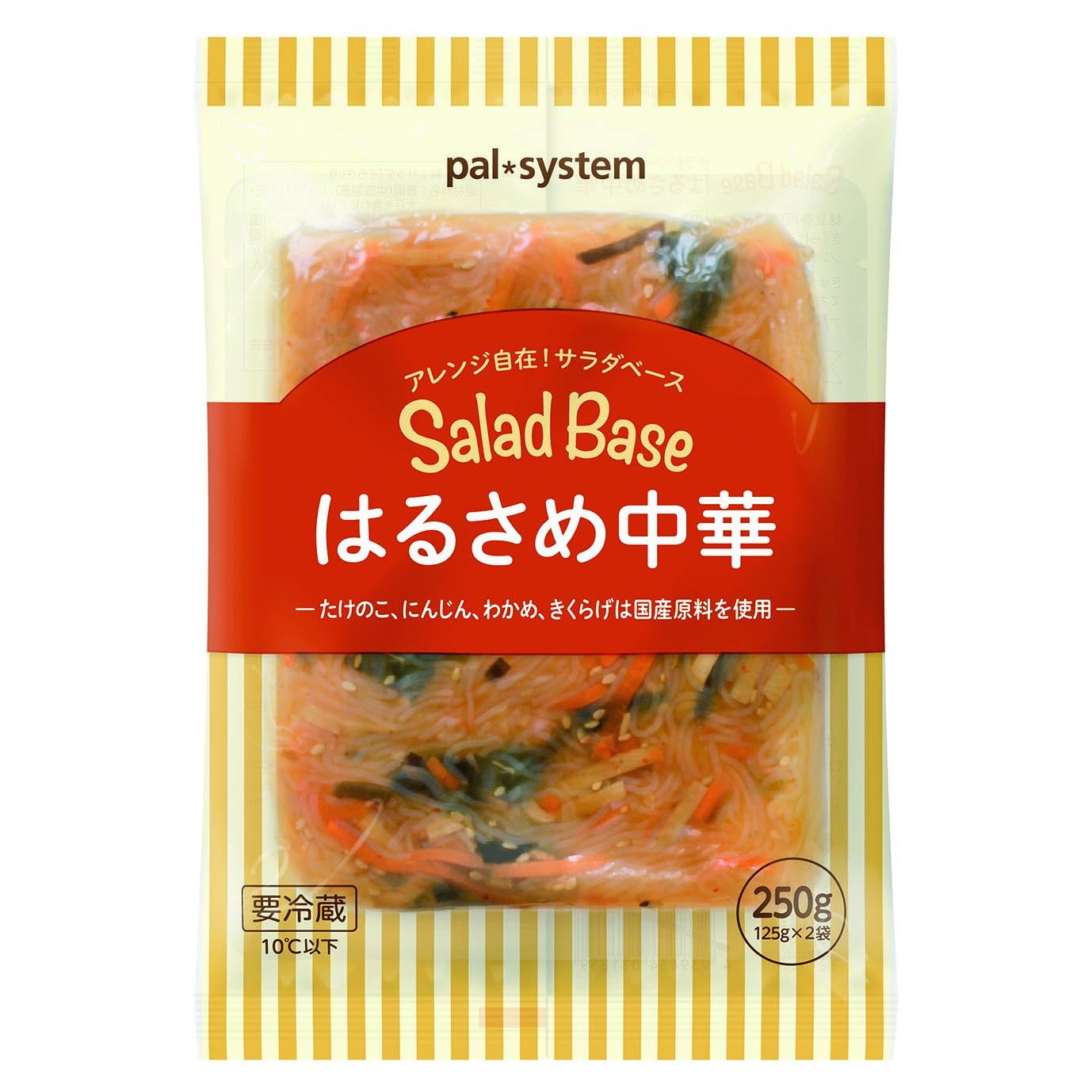 「サラダベースはるさめ中華」は緑豆春雨に国産のたけのことにんじん、わかめ、きくらげを加え、しょうゆ味のごま油が香る中華ドレッシングであえたサラダベースです。春雨の水戻しの手間もなく、ハムやキュウリを加えるもよし、ブロッコリーや小松菜などの温野菜とあえてもよしと手軽に野菜のおかずを作れます。ひき肉と炒めてチャプチェ風、鶏がらスープで一煮立ちさせて春雨スープと色々なアレンジも楽しめます。