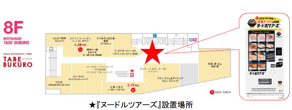 昭和33年創業の業務用麺類製造業を行う株式会社丸山製麺(本社:東京都大田区、代表取締役:丸山和浩)は、有名ラーメンの“本物のスープ”と丸山製麺の“麺”を使ったコラボ商品が購入できる冷凍ラーメン自販機『ヌードルツアーズ』( https://noodle-tours.com/ )を、池袋PARCO(東京都豊島区南池袋1-28-2)内の本館8Fレストランフロアに設置し、2023年4月12日(水)より販売開始します。