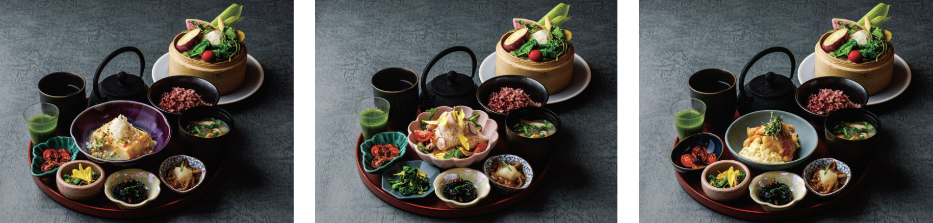 ディナータイムは「野菜とおぼろ豆ふのせいろ蒸し」がすべてのメニューに加わり、ランチタイムには追加することが可能です。