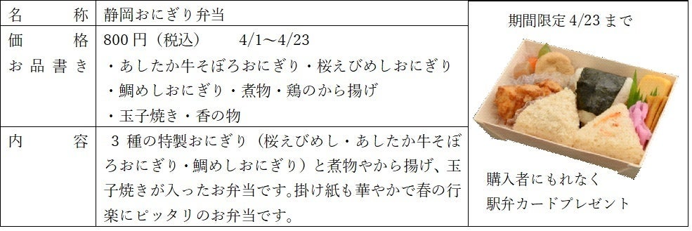 4月10日「駅弁の日」制定30周年記念として好評販売中の【静岡おにぎり弁当】も三島駅新幹線ホーム2号売店で