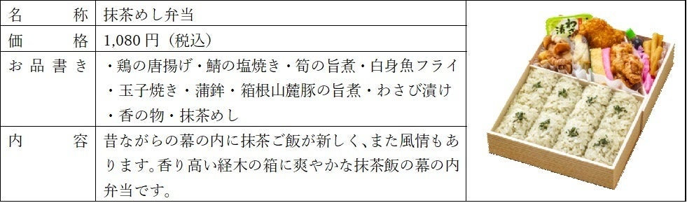 静岡県東部を中心に駅弁・駅そばの販売等を行う株式会社桃中軒(所在地:静岡県沼津市、代表:宇野 秀彦)は、2020年4月より休業しておりました三島駅新幹線ホーム2号売店の営業再開を記念し、静岡県産の抹茶を使用した「抹茶弁当シリーズ」を発売いたします。