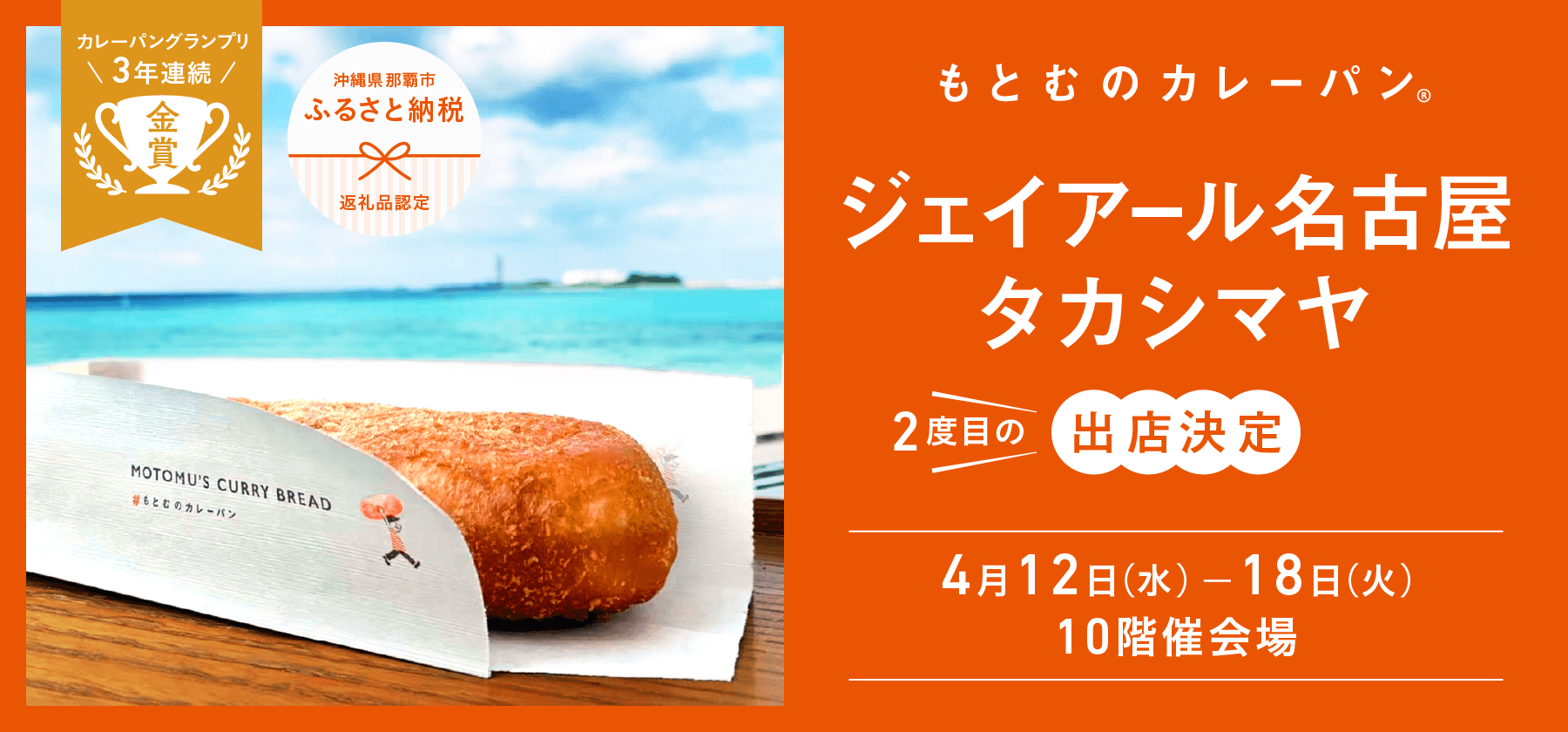 実践型ブランディング会社である株式会社アンド・フォース (本社:東京都千代田区麹町、代表取締役 瀧口 幸明)が運営する、沖縄初のカレーパングランプリ3年連続金賞受賞の焼きたてカレーパン専門店「もとむのカレーパン」は、 2023年4月12日(水)〜4月18日(火) の7日間限定で、ジェイアール名古屋タカシマヤに期間限定出店します。