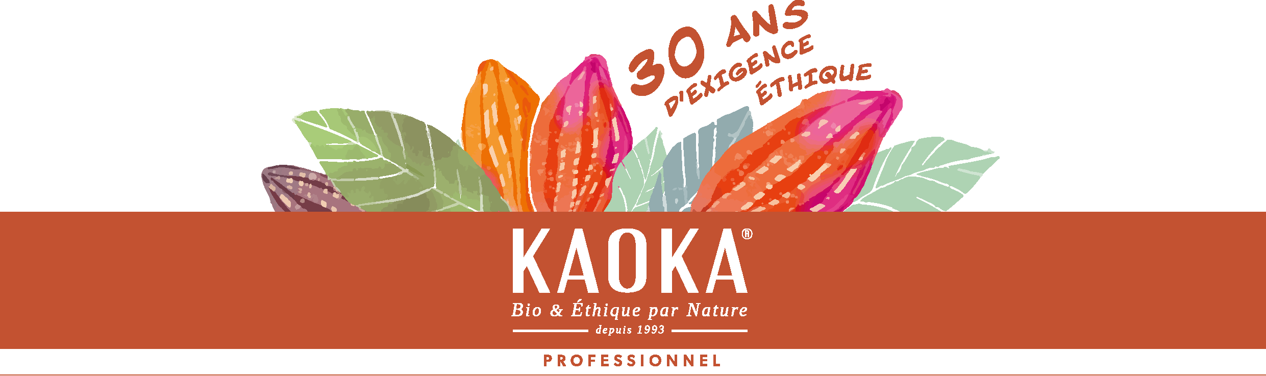 KAOKAは、1993年「地球環境と生産者に配慮したチョコレートを創ること」を企業理念とし、現社長の父アンドレ・ドゥベール氏が創立した、100%オーガニック・フェアトレードのチョコレートブランドです。