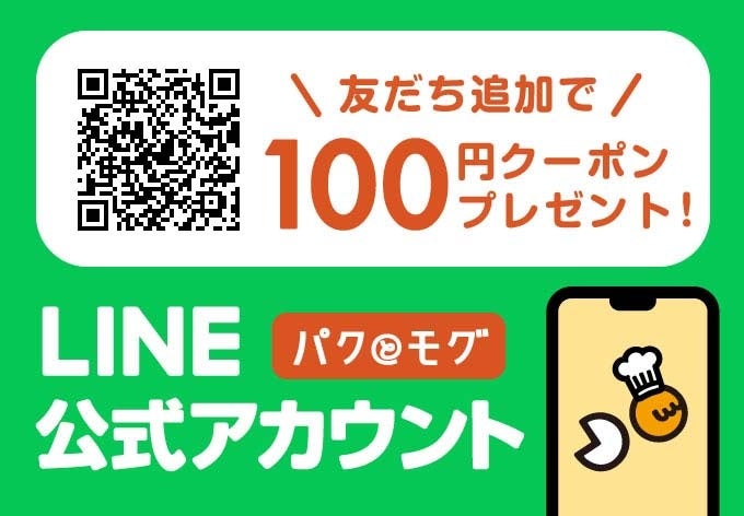 「パクとモグ」ではLINE公式アカウントがスタート。おいしいお菓子の最新情報や、キャンペーン情報などを配信しています。新しくお友だち登録してくださった方には、心からの感謝を込めて「パクとモグ」で使える100円クーポンをプレゼント!LINEの「友達追加」画面で<@paqtomog>をID検索していただくか、QRコードを読み取って、ぜひお友だちに追加してくださいね。