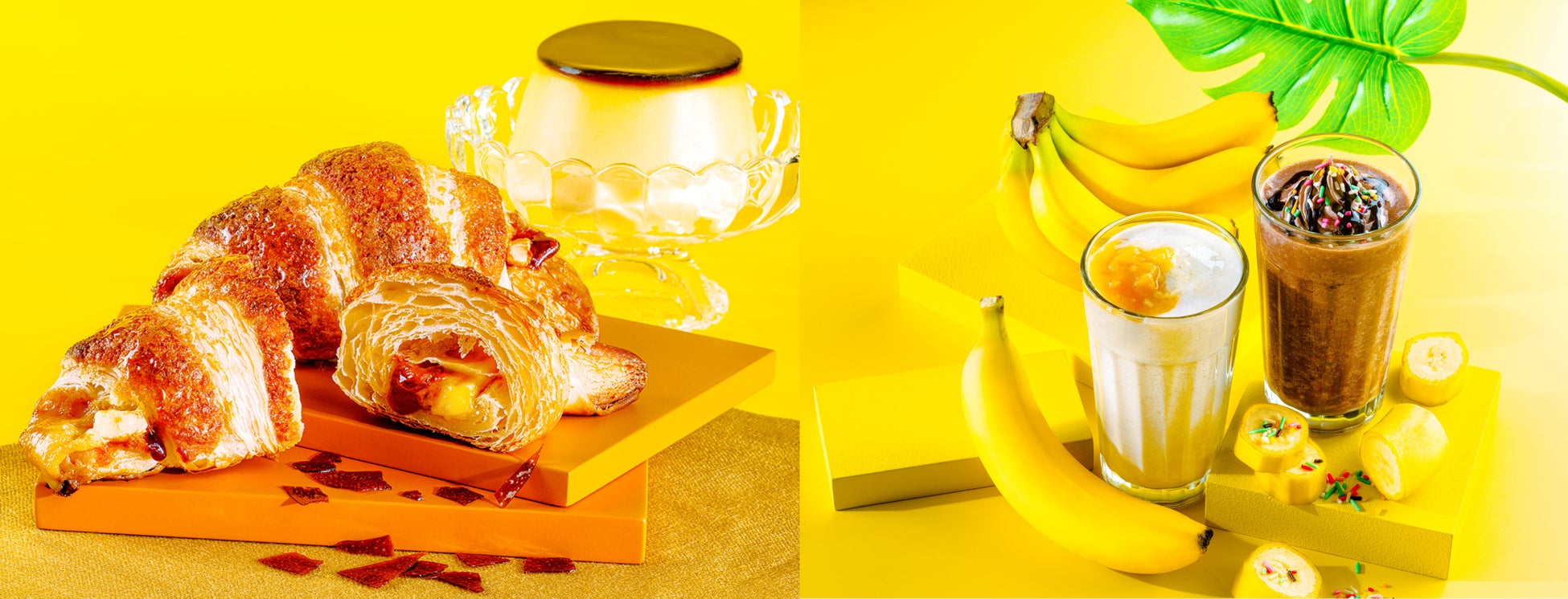 ドリンク2種類は“バナナ”に着目し、「フレッシュ!」「生バナナ」「まるごと」の3要素をキーに完成したスムージーです。新鮮なバナナを大胆にまるごと使用することで、まるでバナナそのものを食べているかのような味わいを楽しめる、まさにその名を体現 する商品です。