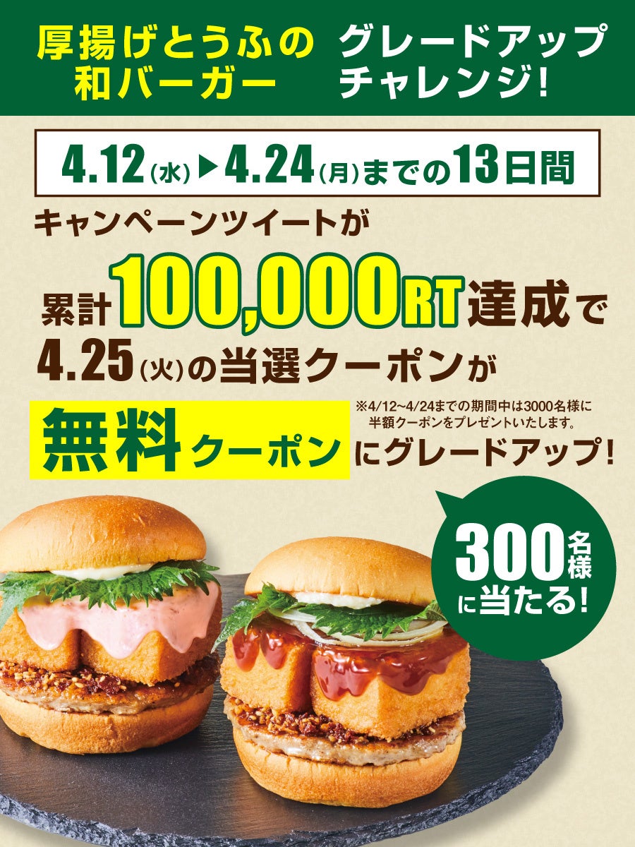 厚揚げとうふの和バーガー2種の半額クーポンを3,000名様にプレゼント!