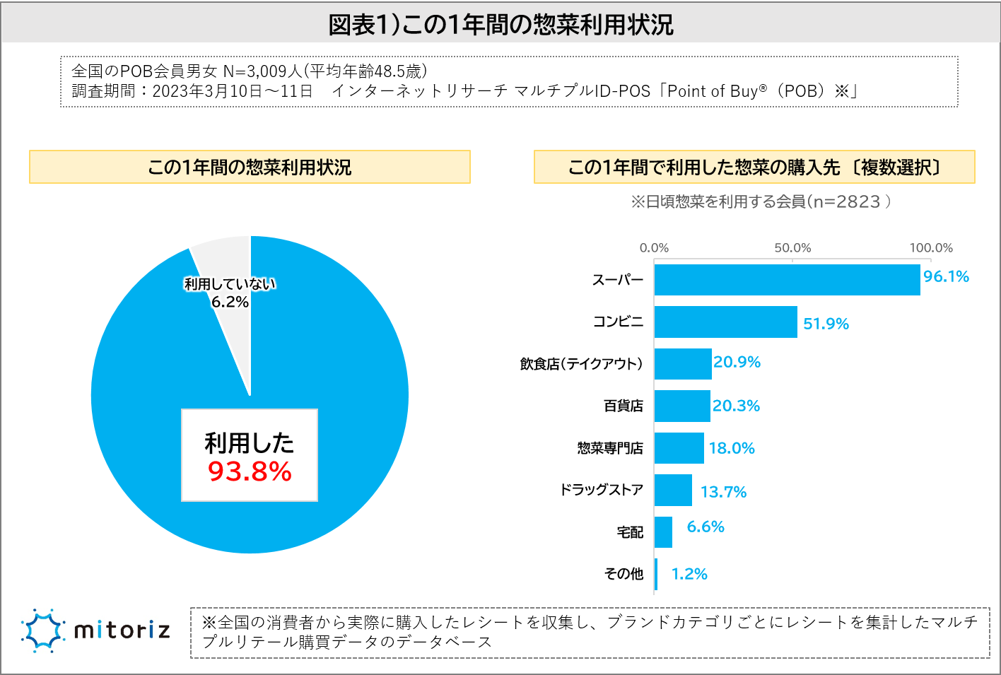 株式会社mitoriz(本社:東京都港区、代表取締役社長:木名瀬博)は、消費者購買行動レポートデータサービス「Point of Buy®(以下、POB)」の会員のPOB会員3,009人(平均年齢48.5歳)に、「コンビニ惣菜に関するアンケート」を実施致しました。