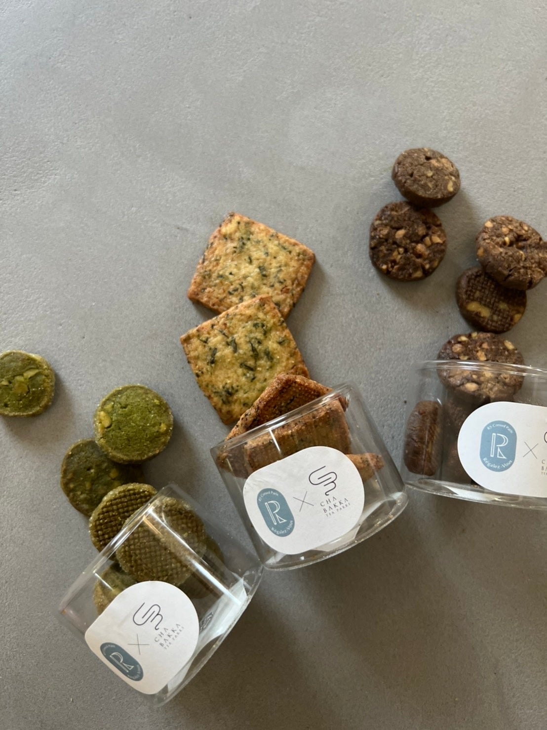 日本茶セレクトショップが鎌倉の人気パティスリー「Regalez Vous(レガレヴ)」とコラボし、厳選した玄米茶・抹茶・棒ほうじ茶の3種のシングルオリジンティー3種を使用したオリジナルサブレ。