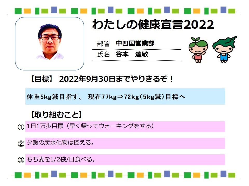 従業員自身が目標を設定する「わたしの健康宣言」