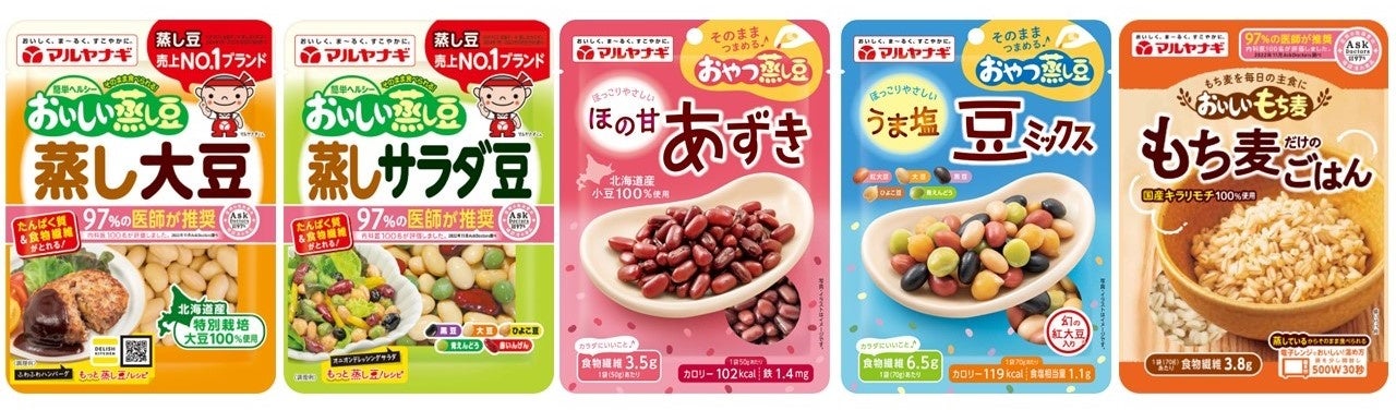 食事や間食として、食物繊維やたんぱく質を摂りやすい「蒸し大豆」「蒸しもち麦」関連商品