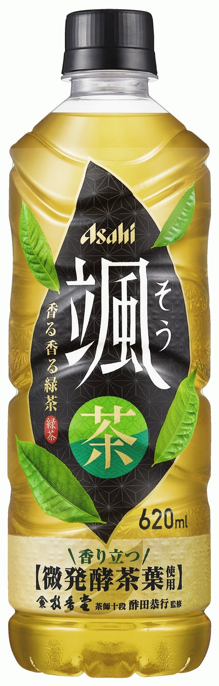『アサヒ 颯』は、日本最高位茶師十段の酢田恭行氏監修のもと、微発酵茶葉(萎凋(いちょう)緑茶)を一部使用し、一般的な緑茶とは異なる華やかな香り立ちを実現した新たな緑茶です。