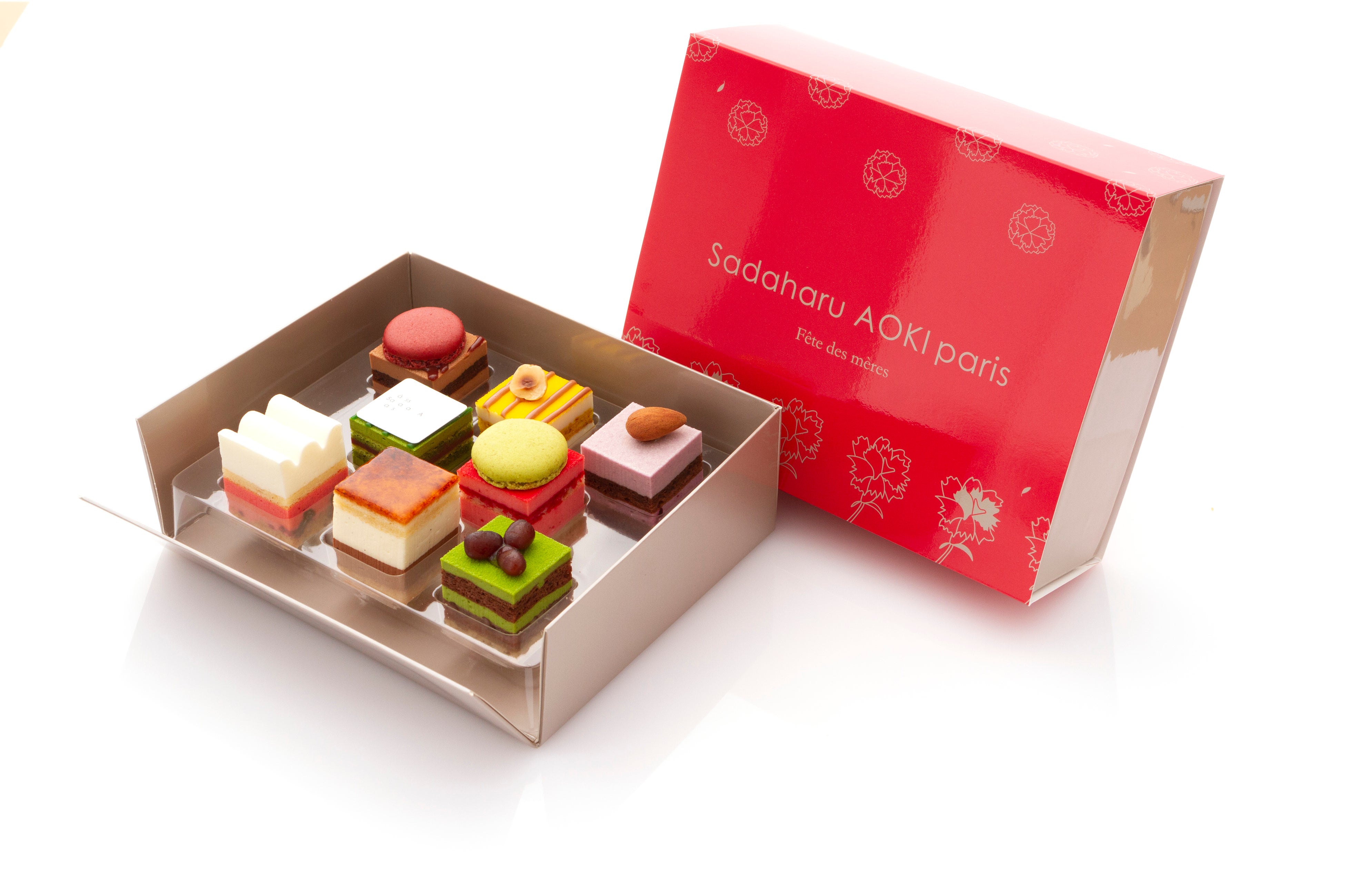 パティスリー・サダハル・アオキ・パリでは国内8店舗にて5月12日(金)より3日間販売する母の日限定ケーキの事前予約を、オンラインショッピングサイトでは冷凍配送ケーキの事前注文を順次承ります。