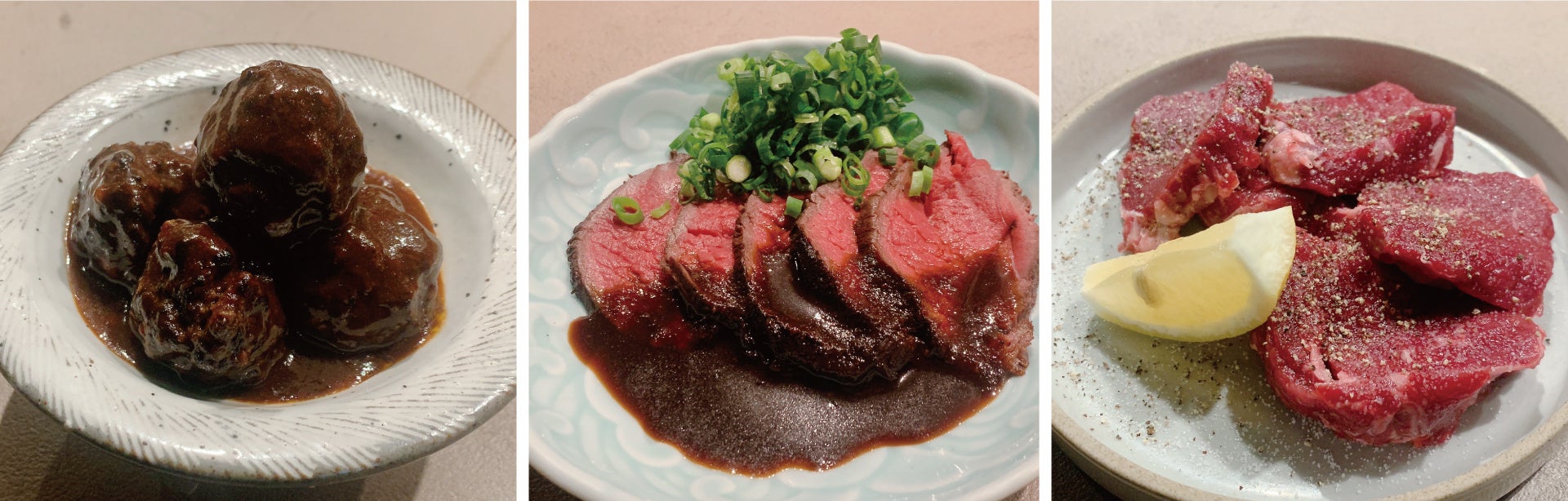 この度、北海道各地の特産品を美味しく調理して提供することで北海道全体を盛り上げたいという思いから『KIBORI』では、今後、北海道の自治体とコラボレーションしたフェアを展開していきます。第1弾として、以前から交流のある北海道・森町にフォーカスした「森町フェア」を4月18日(火)から12月31日(日)まで開催いたします。北海道茅部郡にある森町は、渡島半島の波が静かな内浦湾と緑豊かな駒ヶ岳に抱かれる漁業・農業が盛んな町です。今回、森町からミネラルを豊富に含んだ草を食べて育った新鮮なえぞ鹿を取り寄せ、ジビエならではの赤身肉の旨みが楽しめる4種類のメニューを販売いたします。つなぎを一切使用せず、すね肉のみを使った「えぞ鹿の肉団子」やローストしたもも肉に北海道産の玉ねぎと山わさびのソースで味わう「えぞ鹿モモ肉のロースト」、ロース肉を使ったバター香る「えぞ鹿鉄板焼き」、炭火で香ばしく焼き上げる「えぞ鹿ロースの串焼き」をラインナップ。その他、森町の食材である牡蠣、へしこ、サバ、ひこま豚などを使ったメニューやドリンクを販売します。