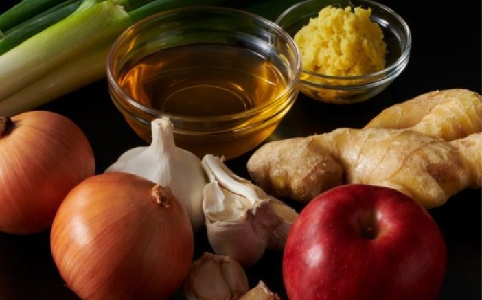 生姜のほか、にんにく、玉ねぎ、りんご、ねぎ油といった香味野菜・果物、計5種をふんだんに使用することで、玉ねぎの甘味で生姜の風味を際立たせているほか、国産りんご100%のすりおろしの甘味や爽やかさ、ねぎ油のコクのある後味を感じる逸品に仕上げています。