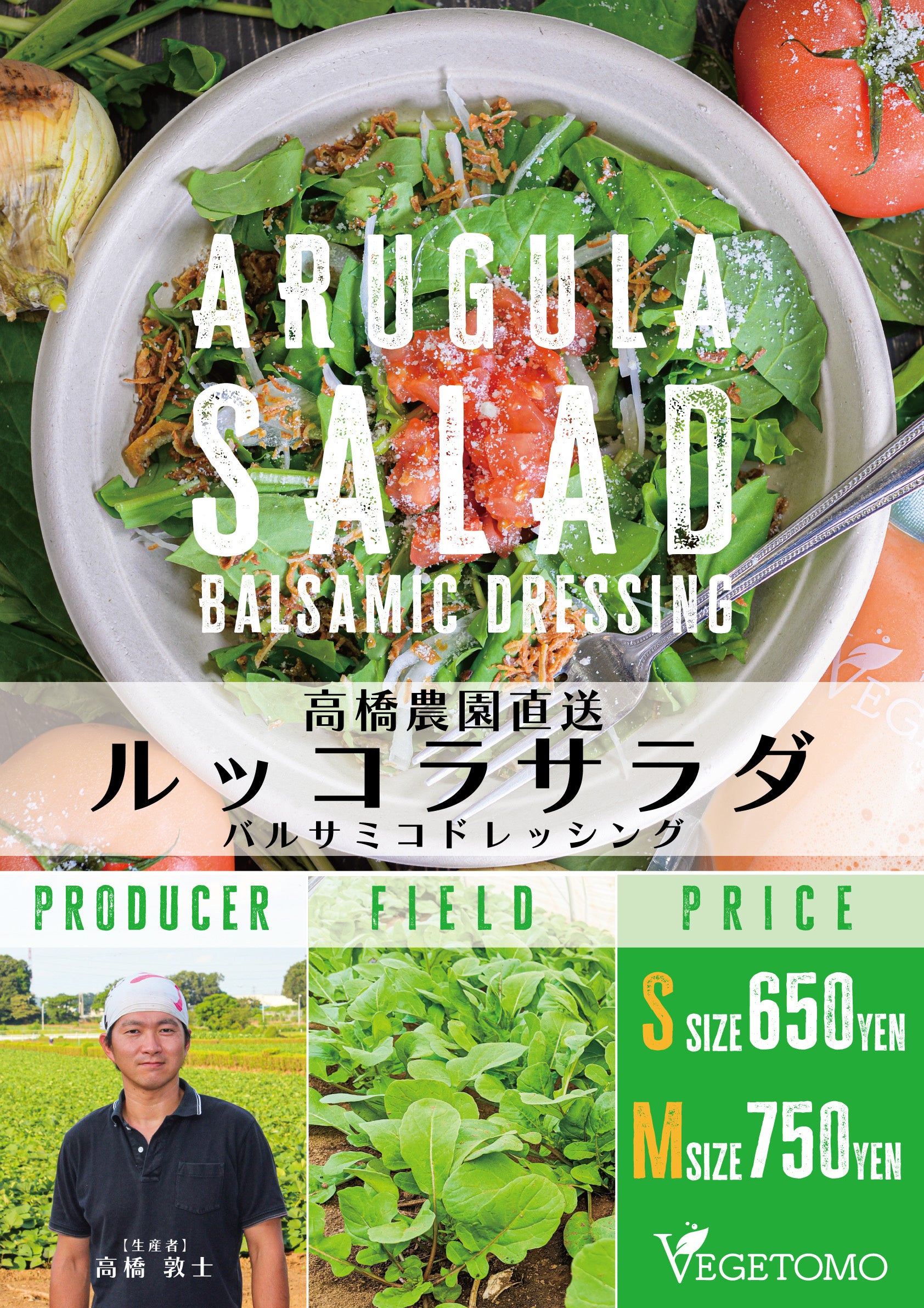 埼玉県入間郡三芳町にある高橋農園さんのルッコラを、弊社の社長が頂いた際に感動し、猛アプローチの末コラボが実現されました。