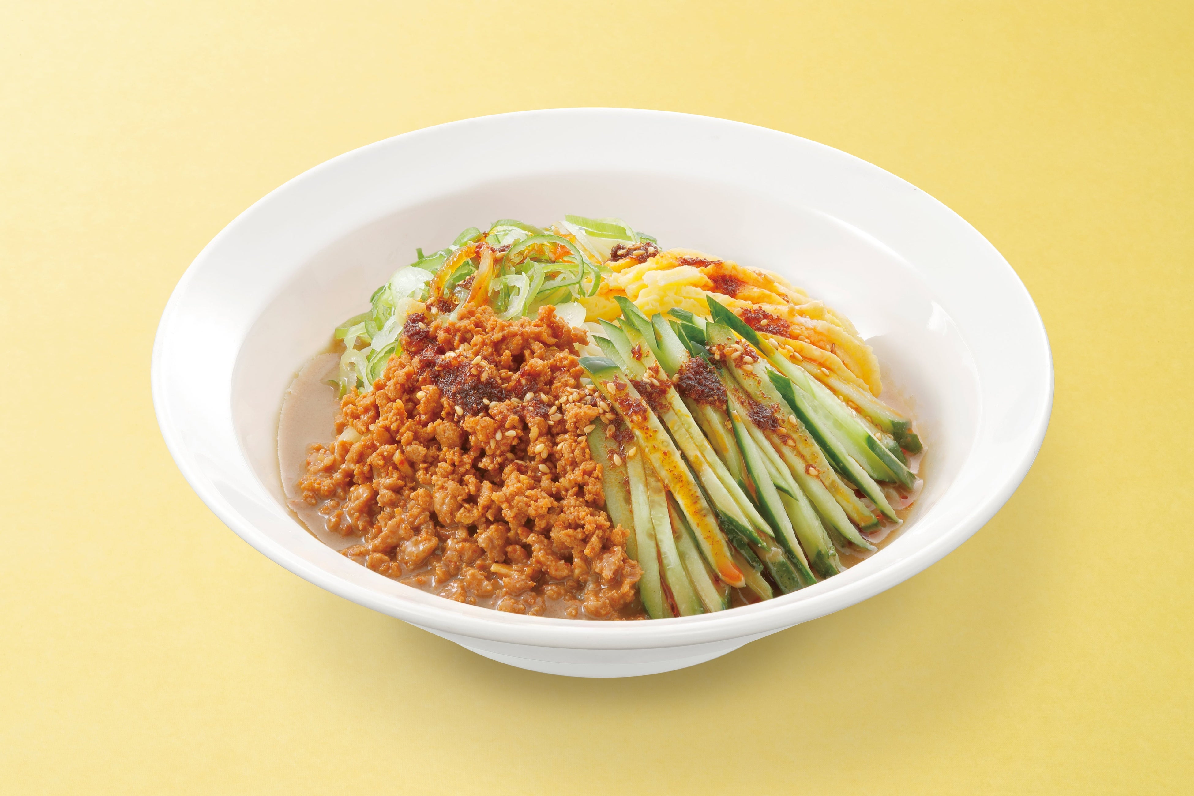 店内仕込みの炸醤(ザージャン)・きゅうり・錦糸卵・ねぎ・自家製辣油を使用。炸醤と自家製辣油が辛さ・旨味・スパイシーさを演出し、濃厚胡麻タレのコクと融合することで、辛くて旨味たっぷり、癖になる味わいです。