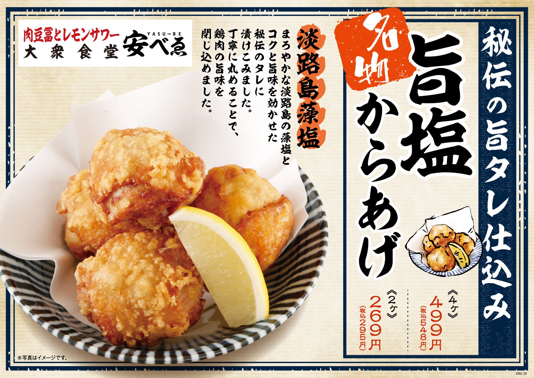 「はなの舞」「さかなや道場」等を展開するチムニー株式会社(本社:東京都墨田区 代表取締役社長:茨田篤司)は、同社が展開する『大衆食堂 安べゑ』がこのたび一般社団法人日本唐揚協会主催の「第14回からあげグランプリ®」にエントリーし、塩ダレ部門にて「旨塩からあげ」が金賞を受賞致しましたことをご報告申し上げます 。