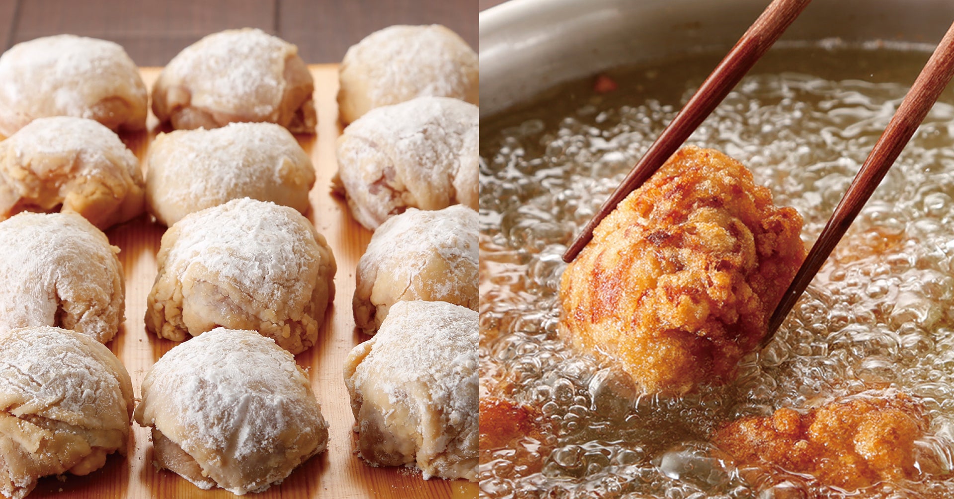 秘伝のタレに漬け込んだ唐揚げを『丁寧に丸めて』から、揚げる事によって、肉汁と旨味を閉じ込めた食べ応えのあるジューシーな味わいになっております。
